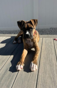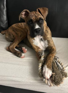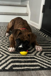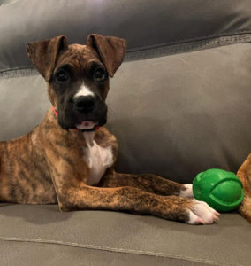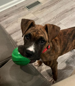 Atlas is a 3 month old puppy who was surrendered to rescue due to a family member’s allergies.  When he arrived at his foster home, he was in a diaper and dealing with an ongoing urinary tract infection.  He visited our rescue vet and started a new course of antibiotics, which has really helped Atlas.  Once he fully recovers from his UTI, he will be neutered and ready for his forever home.  Atlas is in need of a home that can provide him with training and socialization.  Because of his constant puppy nipping, a home without young children may be best for him.  Atlas is a high energy boy who loves to entertain himself with his ball and squeaky toys.  He is in foster home with three other dogs and would love a forever home with a female dog that can tolerate his puppy behavior.  If placed as an only dog, he would benefit from continued socialization regularly with other dogs.  If you can meet his needs, apply today for Atlas!