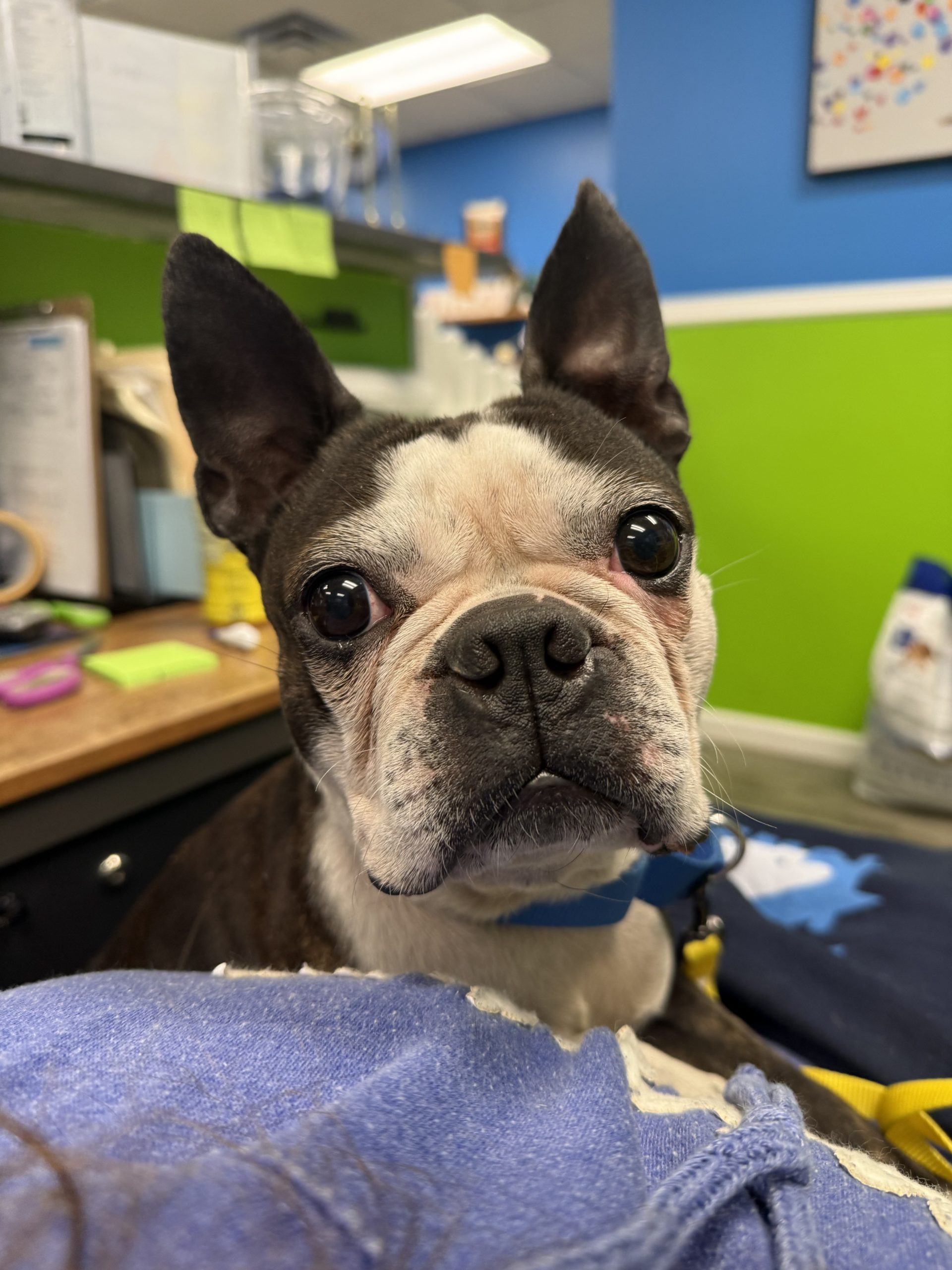 He is an extremely loving, trusting, sweet little boy. Baxter is dog friendly, he is missing the other little dog he lived with that was given away to “a friend”.