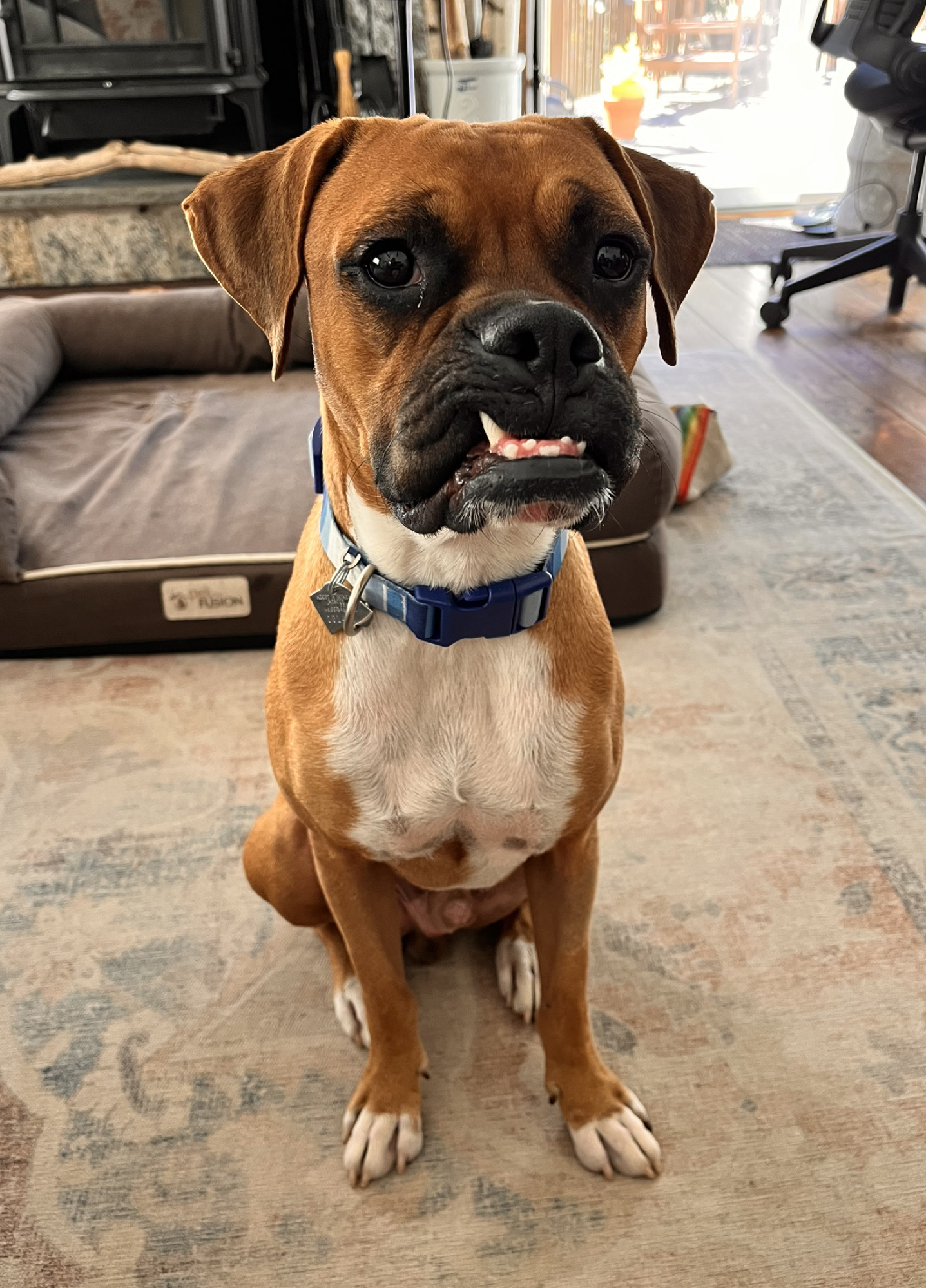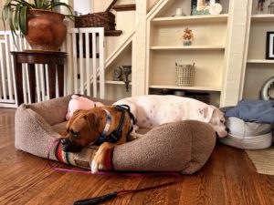 He is settling with his foster family and very much adores their female Boxer. He also loves toys, loves to cuddle and walks great on leash.