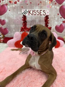 The ideal home for her would have a physically fenced in yard and a male dog to help build her confidence.