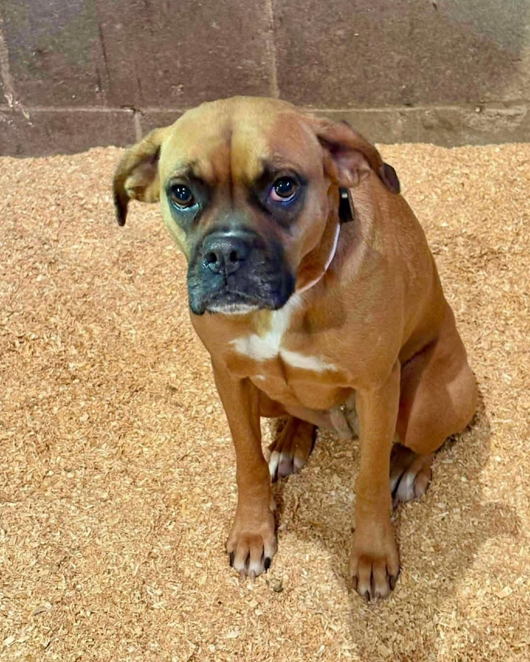 Honey is a boxer girl estimated to be around 3 years of age. Her family contacted the shelter because they have too many dogs and they can no longer care for all of them.  Honey has lived with multiple dogs and she did well on her dog test at the shelter.  She has been around children,  but Honey is unknown with cats.  We would love to bring Honey into rescue, but we need a foster home to help her.  Honey will be transported into Maryland.  If you can foster this sweet and timid girl, apply today or contact your coordinator if you are already approved.