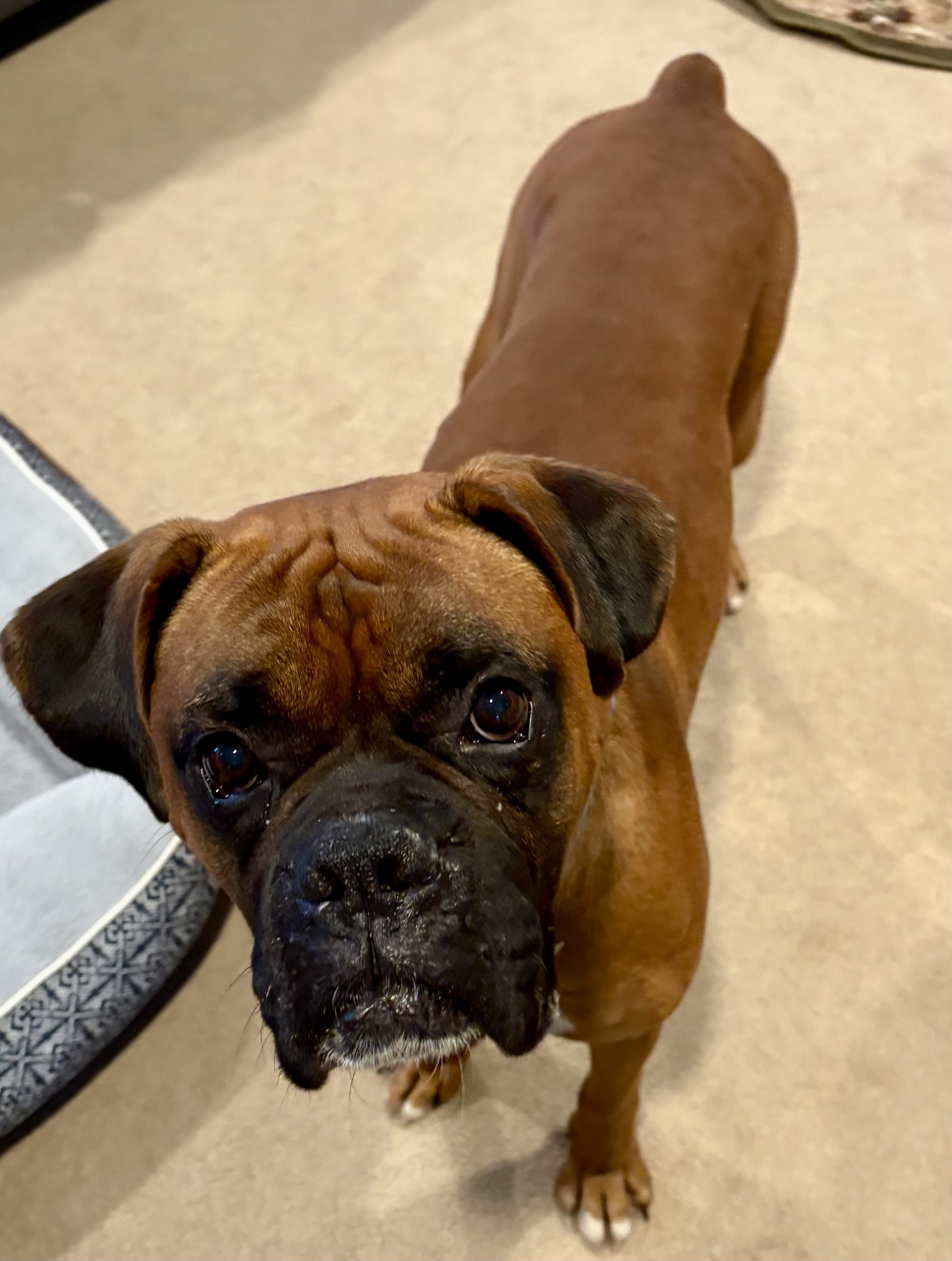 he is sweet, requires a resident female friend  and a bonus fence to zoom around in the yard. In foster with teen children and a female boxer in Lansdale, Pa.