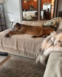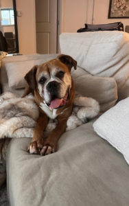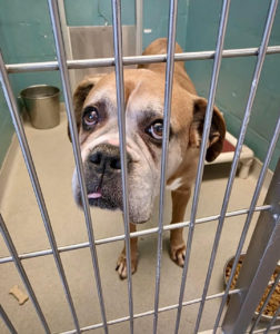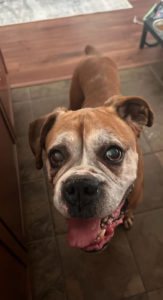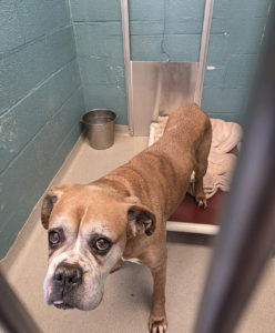 When Petros’ owner passed away, he went to the shelter and was placed on hold for a family member to pick him up.  Petros waited, but nobody came.  The shelter indicated that he hid in the corner and was very shut down in the scary shelter environment.  This senior boy lost everything he had known.  He was underweight and needed several medical issues addressed, including a severe ear infection and a scratch in his eye.  Even though he is very nervous, Petros has been gentle with everyone who handled him.  In the quieter office environment at the shelter, he has started to decompress, play with toys, and enjoy a Kong.  Petros can be a bit overenthusiastic and will give a full body hug, so older children may be best for him.  He has done well around other dogs at the shelter with slow introductions, although he often prefers to keep his distance.