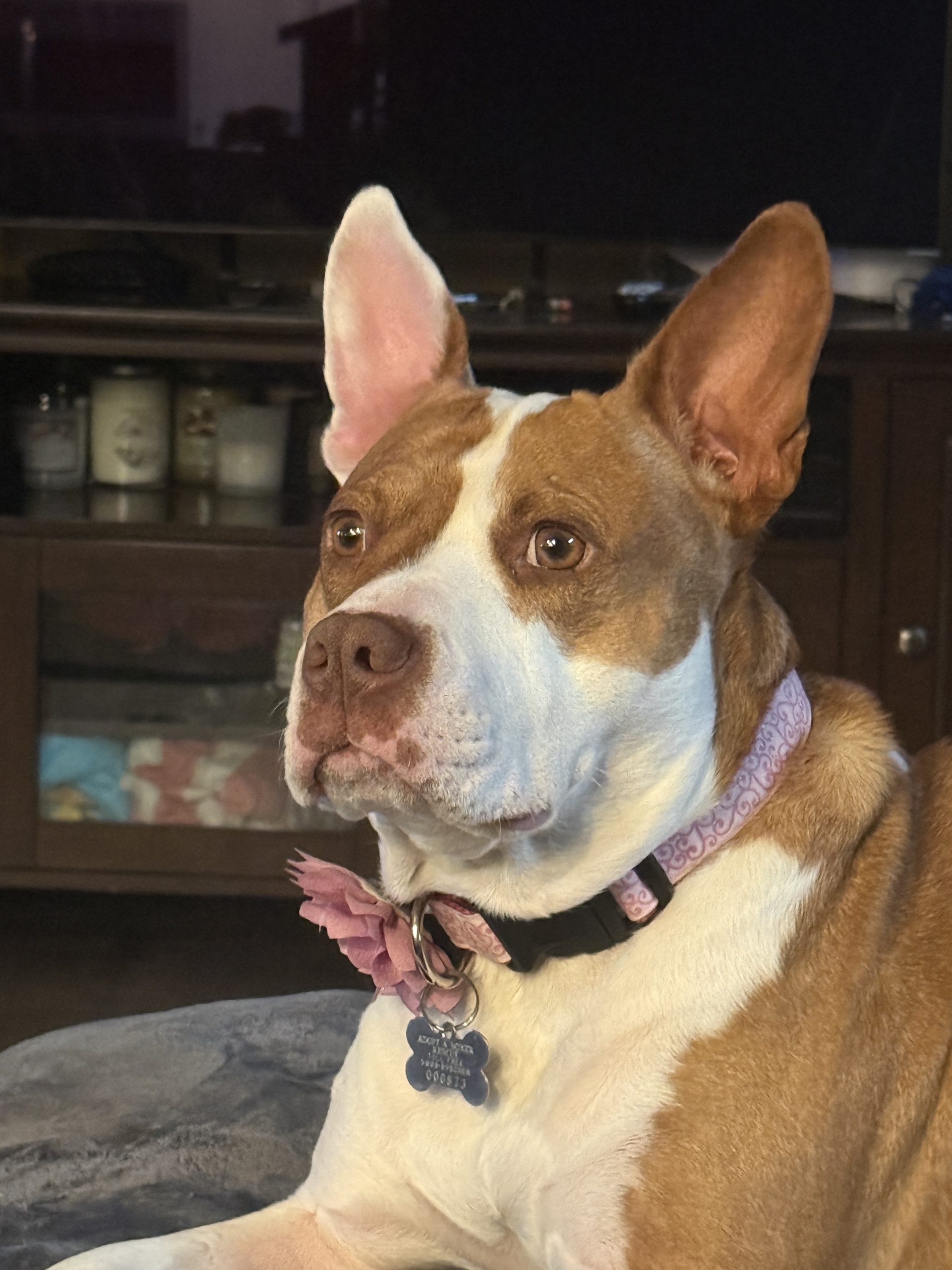 She is a mix breed, pint sized sweetie that we welcomed into our rescue when she was at rock bottom. She is a very loving, loyal girl that loves her blanket and loves toys. Pippy is respectful of other dogs, walks well on leash and is grateful for the simplest act of kindness.  Any home (without kitties) would be lucky to share their life and love with this little girl.