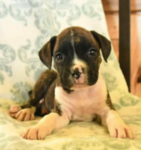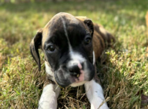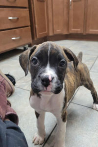 Because of the coordination of some of our volunteers in Maryland and a dedicated woman that works tirelessly to save dogs from the puppy mills, AABR was able to help four boxer puppies who did not sell at auction.  Shadow is a petite brindle boxer boy who just turned 2 months old.  Shadow will be visiting our vet this evening for his exam and to continue his vaccinations.  He is looking for a home with the time and experience for a puppy this age.  Shadow would love a home with a securely fenced yard and another dog to help build his confidence.