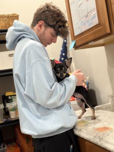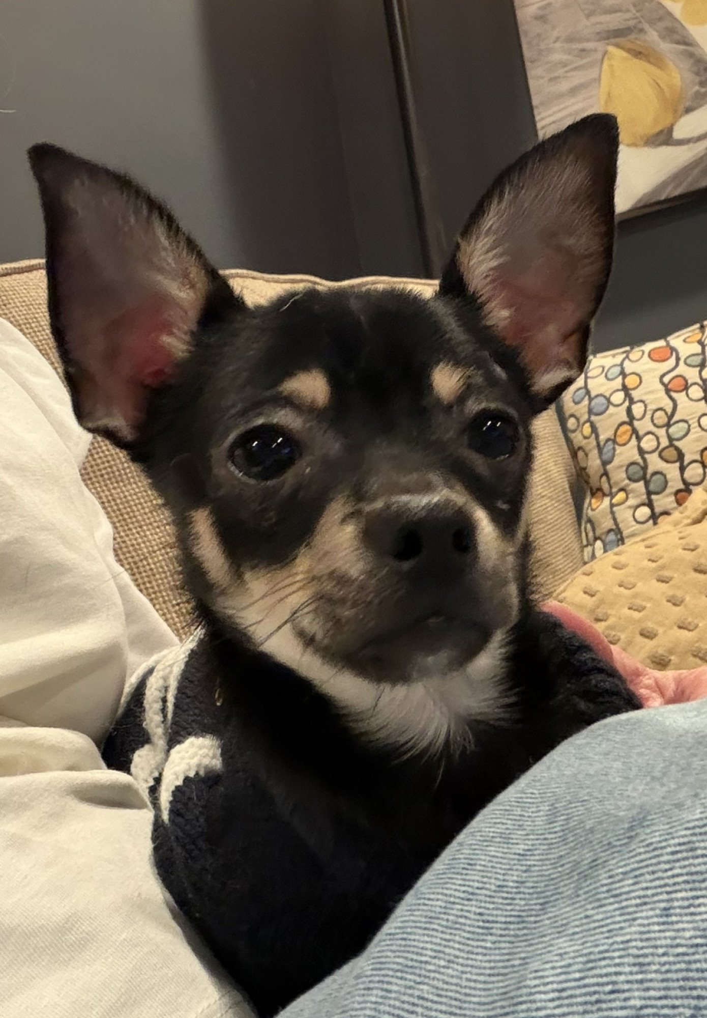 He is a 5 month old Chihuahua that is ready to steal your heart and your lap. Sprocket is working hard on house training and is such a good puppy. He sleeps through the night in his crate loves playing with his toys and absolutely love snuggle time.